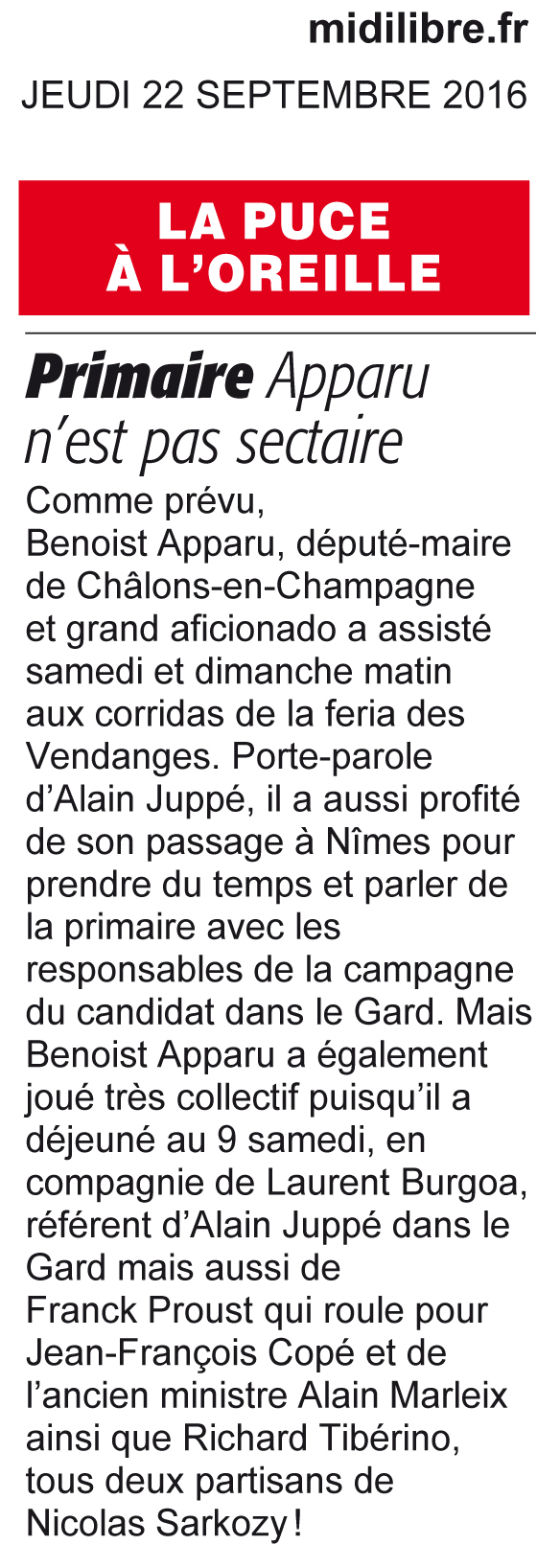 Benoist Apparu, député-maire de Châlons-en-champagne et grand aficionados a assisté samedi et dimanche matin aux corridas de la féria des Vendanges.